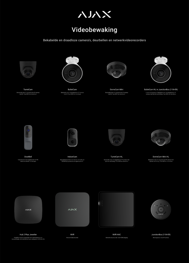 Dankzij slimme functies zoals bewegingsdetectie, meldingen op uw telefoon en cloudopslag heeft u altijd controle over uw eigendommen. Onze camerasystemen en beveiligingscamera’s zijn eenvoudig te combineren met alarmsystemen en toegangscontrole voor een compleet beveiligingsplatform.